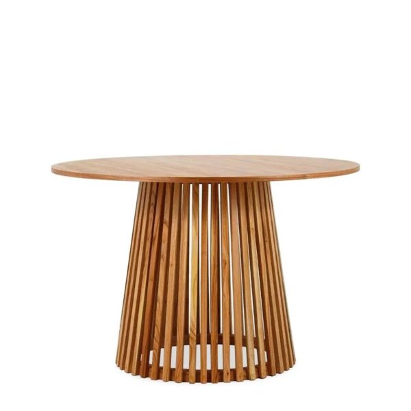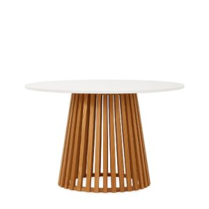 Mesa redonda con diseño que destaca.