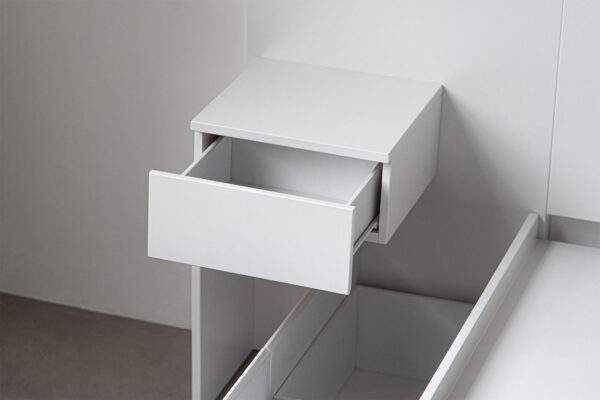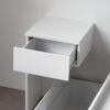Fabricada en MDF laqueado, esta mesa de luz tiene un diseño clásico que se adapta a cualquier decoración. Está disponible en dos modelos: uno con un cajón para guardar objetos pequeños y otro con un cajón y una bandeja en la parte superior, ideal para apoyar un café, celular o libro. Su estilo flotante le otorga un toque moderno y aprovecha el espacio, permitiendo abrir los cajones de la cama box con facilidad. Medidas 36x36x18