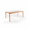 Estructura de madera y MDF laminado, acabado con laca poliuretanica transparente. Tapa en MDF laqueado con vidrio laqueado de 3 mm. Disponible en combinación Off white + roble.