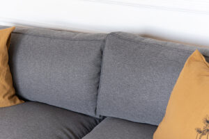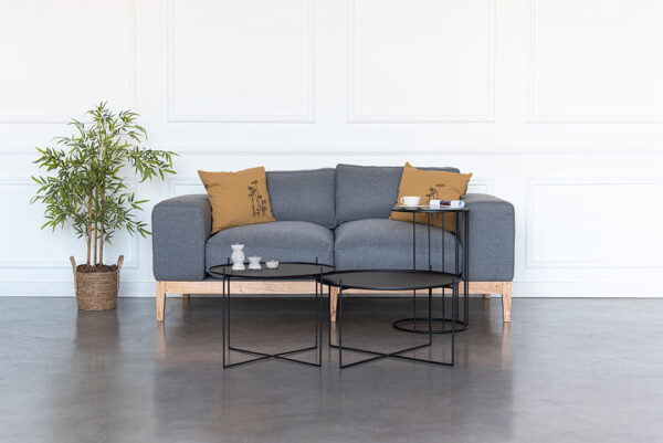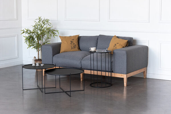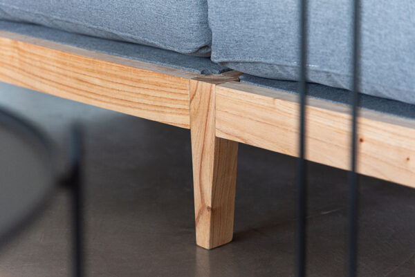 Sofá de diseño moderno. Ofrece una apariencia neutra que se adapta a distintos estilos de decoración. Sus almohadones amplios y mullidos aseguran comodidad, mientras que la estructura de madera proporciona estabilidad. Medida 200×95